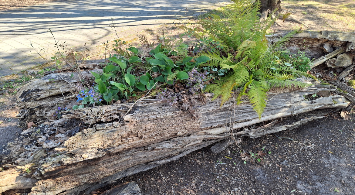 Zerfallendes Holz ist ein guter Nährboden für neues Leben. Während eher trockenes, stehendes Totholz gerne von Hohlraumbewohnenden Insekten und Vögeln genutzt wird, kann eher feuchtes, liegendes Totholz von Pflanzen besiedelt werden. Hier tummeln sich auch Käfer, Ameisen und andere bodengebundene Arten. Holz wird zu Humus und dient dem Bodenleben, das wiederum für Bodenfruchtbarkeit sorgt. So schließt sich ein Kreis.