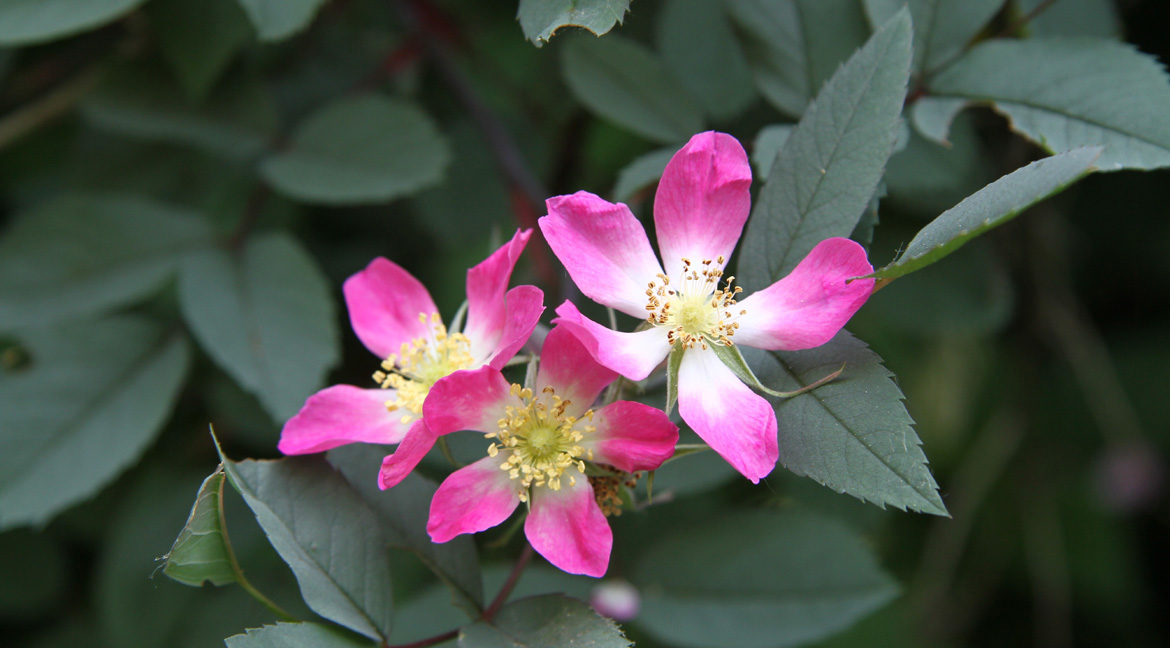 Die Rose (Rosa in Arten und Sorten) gilt seit Urzeiten als Königin der Pflanzen. Sie steht für Schönheit, Harmonie und die kraftvolle Liebe des Herzens. Oft findet man sie als Symbol in Wappen oder historischen Bildern. Sie fehlt in kaum einem Garten und wurde schon tausendfach zu immer neuen Sorten gezüchtet. Rosenöl und Rosenwasser harmonisieren sowohl äußerlich als auch innerlich und können gefahrlos in Küche und Bad genutzt werden. Rosen sind echte Trockenheitskünstlerinnen, lieben die Sonne und sind in der Landschaft oft an Wegrändern und Böschungen zu finden. Im Spätsommer erscheinen dann die roten Hagebutten, die für Tee gesammelt und getrocknet werden, um im Herbst gegen Erkältungen gewappnet zu sein. Die besondere Expertin für alle Erkältungskrankheiten ist allerdings: